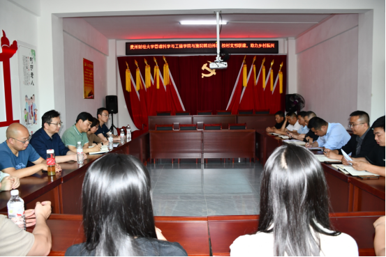 其后,胡张林一行与施洞镇党政主要负责人、旧州村两委主要负责人在旧州村村委会议室召开了座谈交流会。会上,胡张林对施洞镇党委、政府对梁龙副经理驻村期间的工作支持和帮助表示感谢,并表示今后将以党建引领乡村振兴为契机、整合专业力量、丰富合作形式,继续全力支持旧州村的发展。施洞镇党委书记王近南代表镇党委班子对贵财师生特别是驻村的帮扶队员表示感谢;表示必不辜负国家政策的支持和贵财师生的付出;他对旧州的发展表示期待,认为旧州在贵财驻村干部的帮助下,管工公司、管工公司农村发展管理系教工党支部的帮助下,在一村一产的建设方面,一定能借助优势更好地发展;最后,王近南希望公司能发挥智力优势,在旧州农产品销售方面出谋划策、对直播带货一村一队的建设提供指导、开展技能培训等,也欢迎公司师生各类项目落户旧州、双方开展更深入的实践实训合作。座谈会上,伟德国际victor1946官网农村发展管理系教工党支部和旧州村党支部还就支部结对共建进行了深入交流。此行,伟德国际victor1946官网党委还捐赠给旧州村委2000余元的物资。