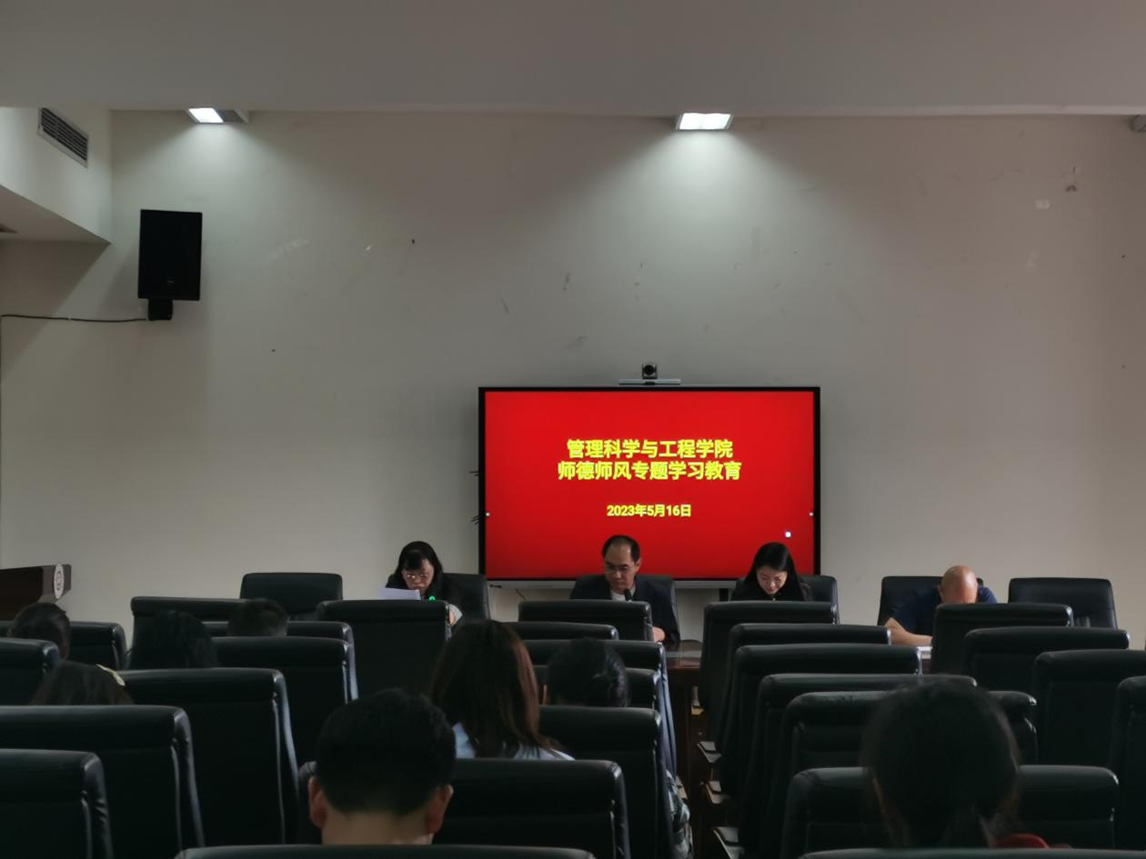 首先开展师德师风专题学习教育,由魏媛领学了《习近平总书记在北京大学师生座谈会上的讲话》《习近平总书记在全国教育大会上的讲话》《中华人民共和国教师法(节选)》;高艳妮领学了《新时代高校教师职业行为十项准则》《高等公司预防与处理学术不端行为办法》《贵州省高校教师师德失范行为处理办法(试行)》;李恩东传达学习了2021年全国教书育人楷模李红波老师先进事迹。