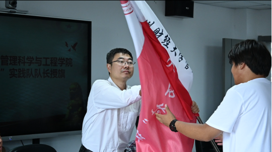 胡张林书记和郭长睿经理分别为暑期“三下乡”实践队和“千乡万村”实践队授旗。