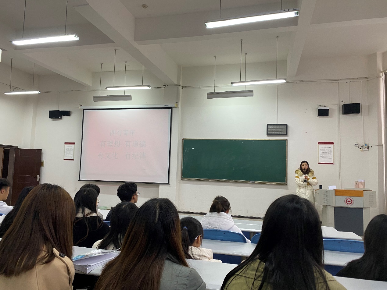在此次会议中,辅导员赵本琴老师对同学们学习和未来的工作进行了关心询问,并表示希望同学们承担好自己的责任,做一个有理想、有道德、有文化、有纪律的“四有”青年。