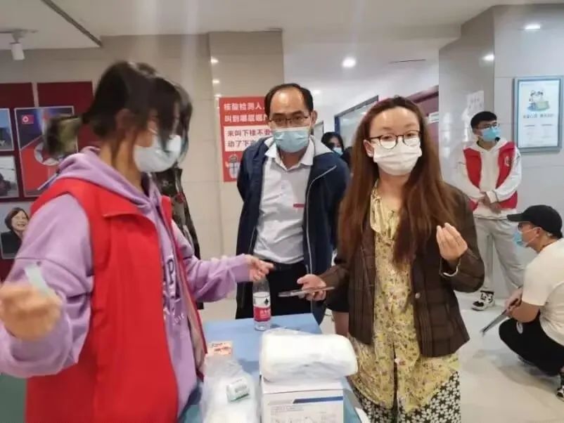 志愿者娄梦飞:我作为志愿者的小组长之一,主要负责帮助D17的同学们有秩序的进行核酸检测,并对每一位核酸的同学进行登记,确保每一位同学都能够进行核酸检测。我想默默奉献出自己的一份力量,虽然我的力量在人群中微不足道,但至少我在努力。作为新时代青年,我们应无畏赴身时代潮流之中以滚涌若潮之心诠释责任与担当!