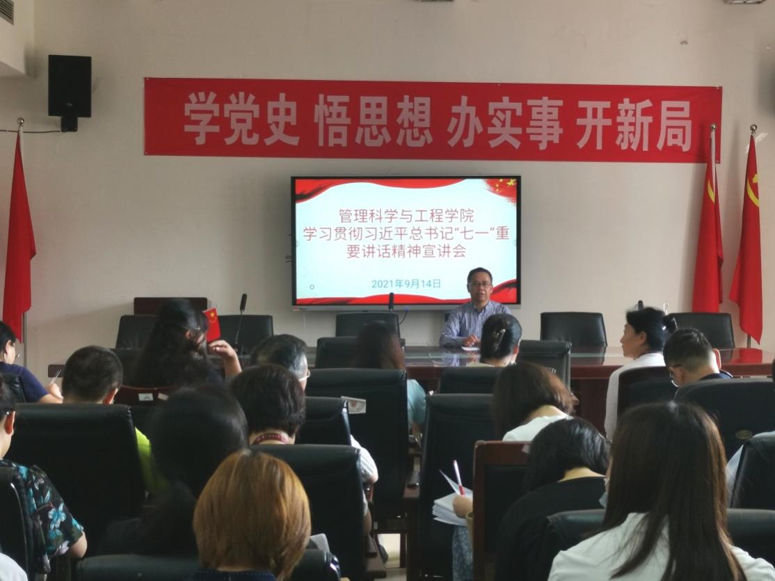 伟德国际victor1946官网党委9月14日在正德楼301会议室举办学习贯彻习近平总书记“七一”重要讲话精神专题宣讲会。党委书记周新刚作宣讲,全院各基层党支部书记,全体专职教师及行政工作人员参加活动。