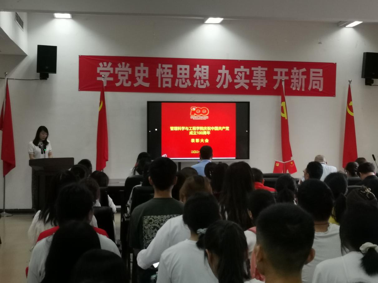 在中国共产党成立100周年之际,为表彰先进,砥砺奋进,7月2日,管理科学与工程公司党委在正德楼301会议室举行庆祝中国共产党成立100周年表彰大会。公司全体教师党员、部分员工党员代表、科级干部,受表彰的2021年度优秀共产党员、优秀党务工作者、先进基层党组织等80余人参加大会。大会由公司党委副书记王茜同志主持。