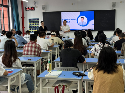 讲座中,孔祥兰书记结合自身丰富的行业经验,从贵州省电子商务发展现状切入,围绕市场需求与职业选择、有效简历的撰写技巧、面试技巧与常见问题、持续教育与职业成长、电子商务运营管理之政策法规、跨境电商大赛宣讲等多个核心板块,系统阐述了电商运营管理的核心逻辑与未来机遇。她以“神秘箱子”互动环节引出数据洞察,通过对比2000-2023年全国高校毕业生人数及就业形势,直指当前青年群体面临的“孔乙己文学”焦虑现象——“学历贬值”背后折射出的是职业规划与市场需求的错位。她强调:“新时代青年需以‘脱下长衫’的勇气正视职业选择,将个人发展融入乡村振兴、数字经济等国家战略,在电商赋能的广阔天地中实现价值。”