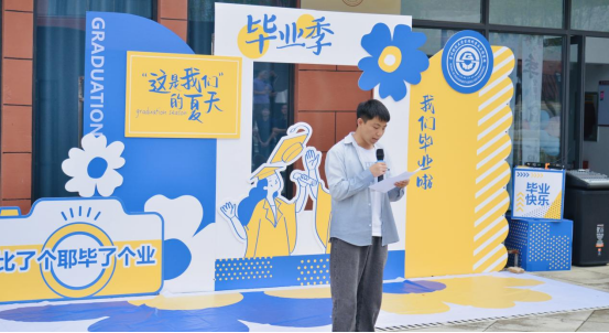 辅导员代表陈佳莲表示了对毕业生的深切牵挂与美好期许。她表示,四年的时光如白驹过隙,还记得初见同学们时,大家眼中满是对老员工活的憧憬与期待;这四年里,见证了同学们从青涩走向成熟,从迷茫变得坚定,点点滴滴的回忆,都如同璀璨星辰,镶嵌在记忆的天空,希望同学们的未来一路生花。