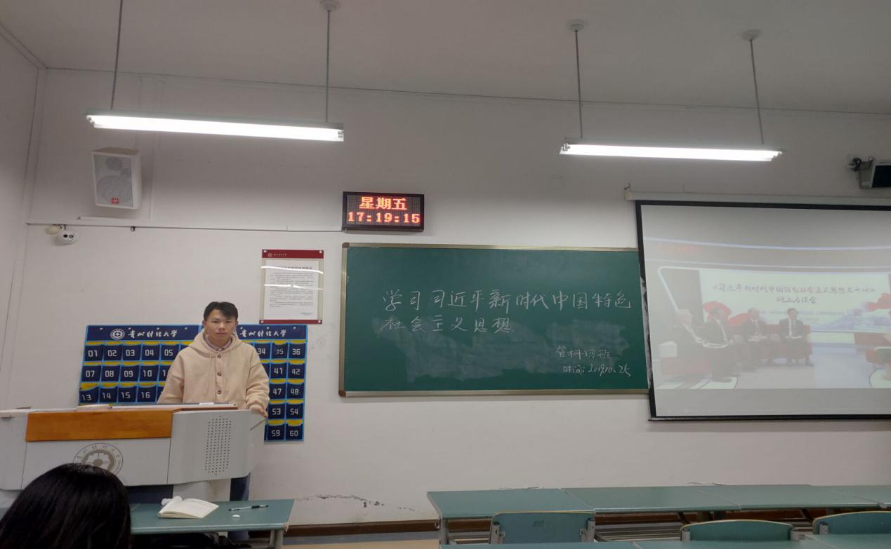 为了学习并贯彻习近平新时代中国特色社会主义思想,弘扬社会主义核心价值观,了解祖国发展思想的行动指南。伟德国际victor1946官网19级四班全体成员于2019年10月25日在博学楼4-5教室开展学习“习近平新时代中国特色社会主义思想”活动,此次活动由周道主持。
