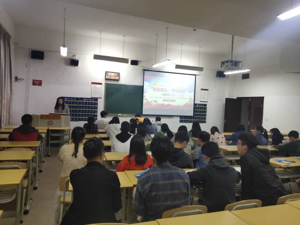 首先,由团支书彭唯珂提出此次学习主题为“不忘初心、牢记使命”——学习《习近平新时代中国特色社会主义思想学习纲要》。同时,彭唯珂向同学们介绍了《习近平新时代中国特色社会主义思想学习纲要》的相关内容,团支部成员积极参与,分享了对《习近平新时代中国特色社会主义思想学习纲要》的理解和感悟,这一环节增进了同学们对习近平新时代中国特色社会主义思想的认识,也更加坚定了新时代新青年筑梦未来的信心。